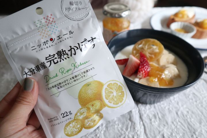 トッピングしたドライフルーツは、ニッポンエールの《大分県産完熟かぼすのドライフルーツ》です。