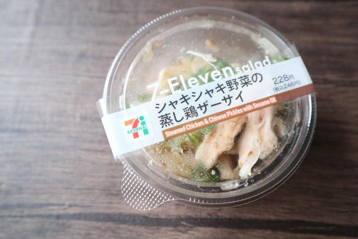 《シャキシャキ野菜の蒸し鶏ザーサイ》246円。