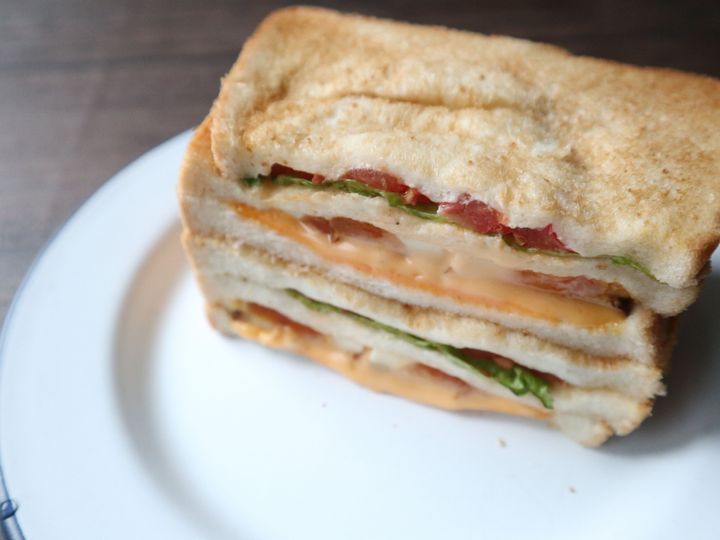 チキントマト、レタス、ゆで卵、チーズ、チーズソースがサンドされていてボリューム満点です!