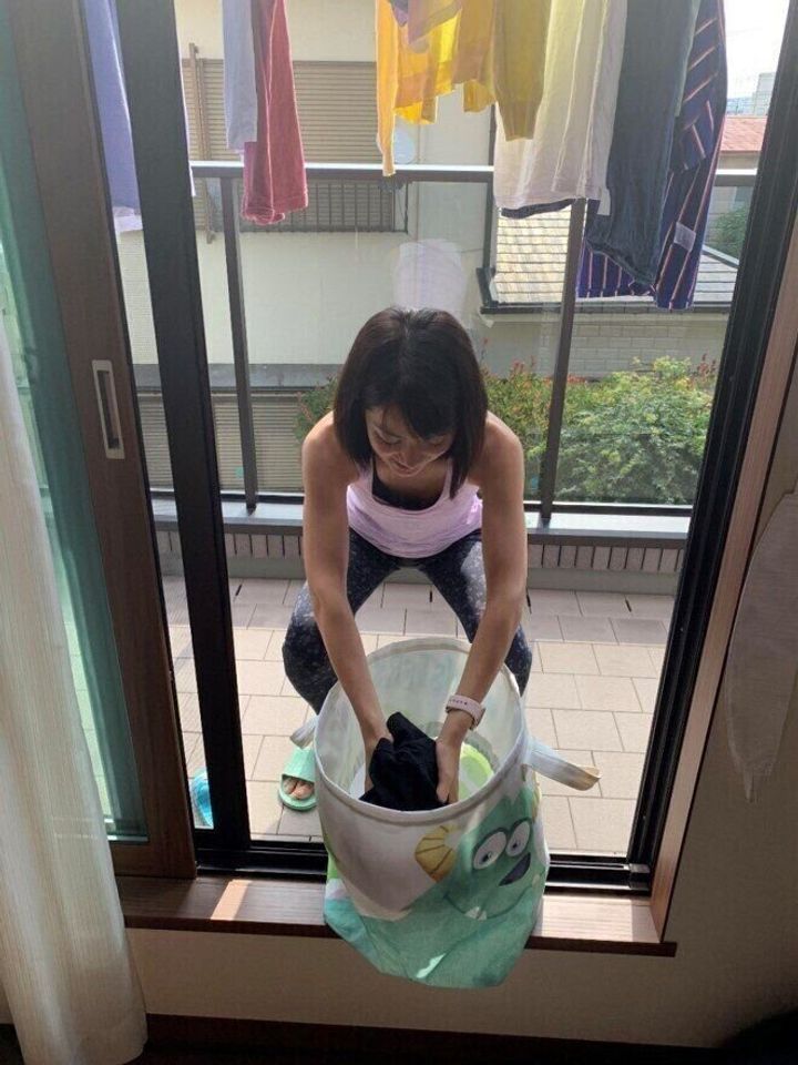 洗濯を干す時に、かがむ姿勢で、ついでにスクワット!