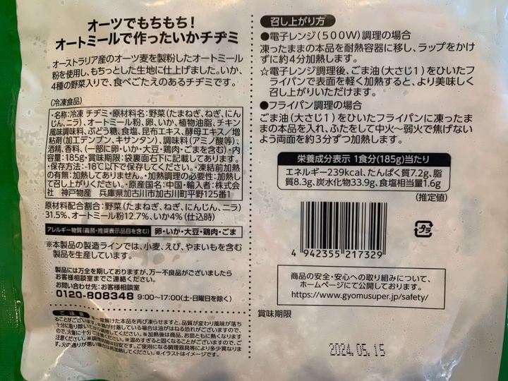 そんなオートミールを使ったヘルシーな粉もの冷凍食品を、業務スーパーで発見しました。