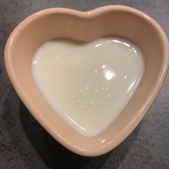 素に牛乳を加えて、混ぜ、さらにレモンシロップを加えてひたすら混ぜます。