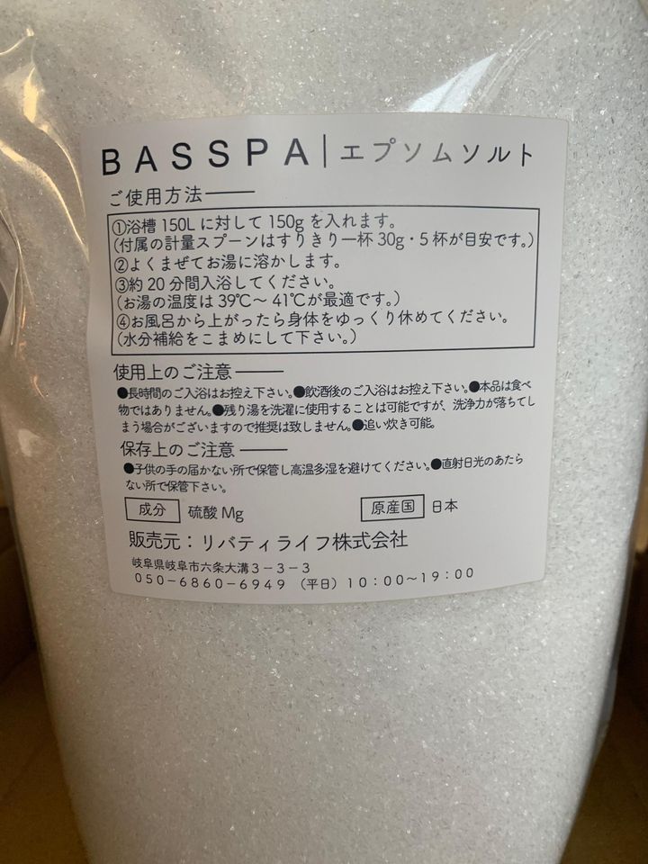 見た目は普通のバスソルトといった感じ。3kgで1,690円(税込)と、かなりコスパ良し。