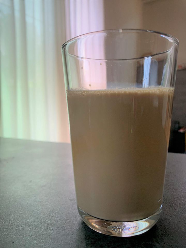 無糖タイプなので、ダイエット中でも問題なし。タンパク質や食物繊維も摂りたい人は無調整豆乳、脂質が気になる人は低脂肪乳や無脂肪乳で割ると良いですね。