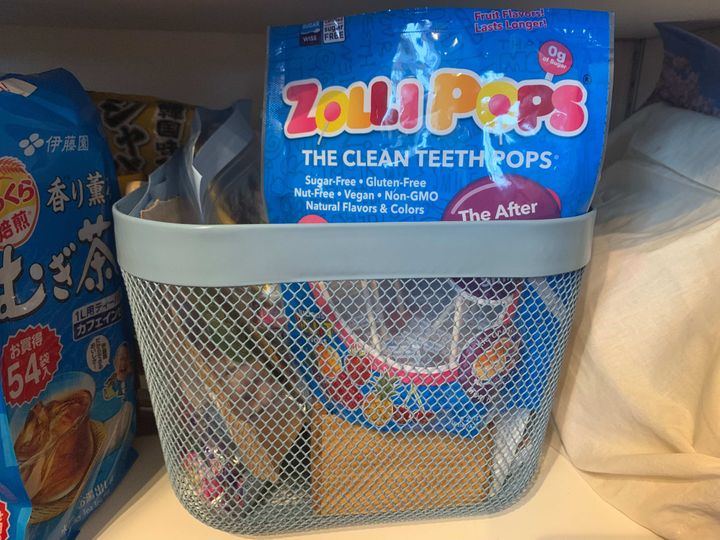 常温保存の、祖父母に買ってもらったり、お友達とのお菓子交換でもらったりしたお菓子は、全てパントリーの小さなカゴの中へ。息子自身に管理してもらっています。ママがこっそり食べたらバレます。食べられません。たまに賞味期限をチェックして、切れてしまっている物だけ除けます。