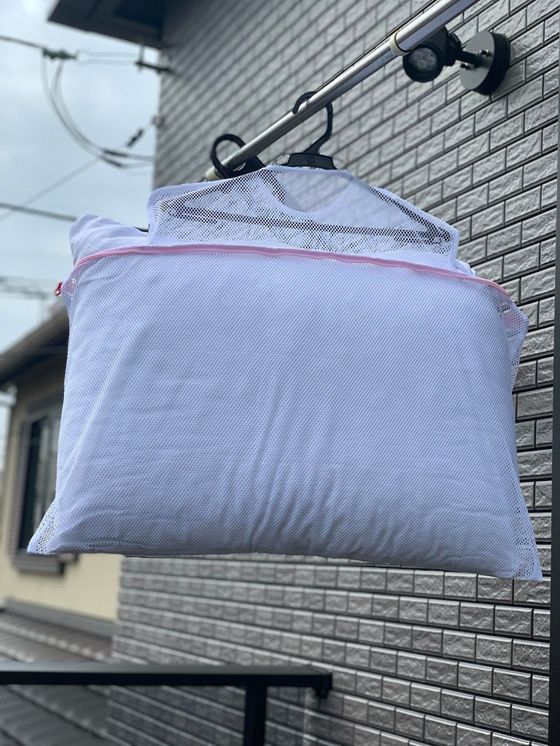 洗える枕なら、このネットに入れて洗い、そのままハンガーで干すことが出来ます。