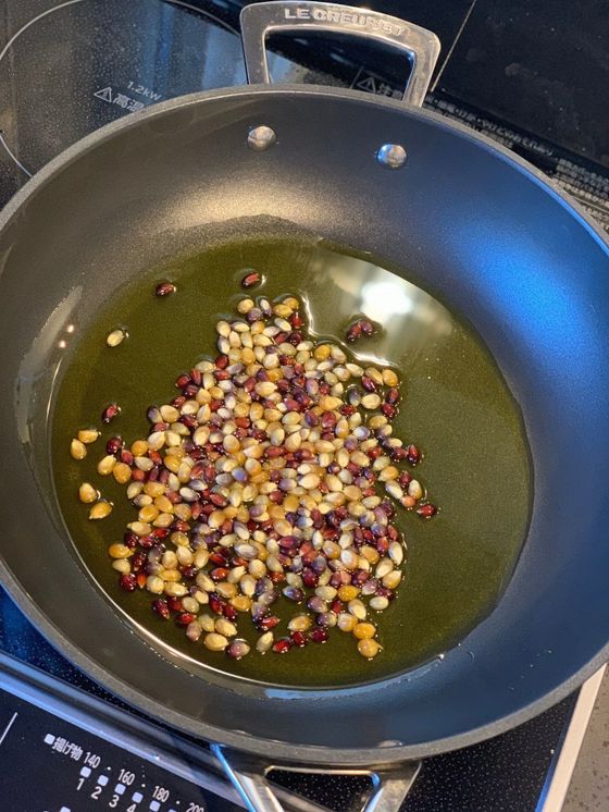 ポップコーンを作る時に使う油にもこだわります。