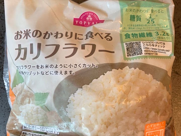 糖質制限初心者さんにオススメしたいのが、こちら。トップバリュの「お米のかわりに食べるカリフラワー」。