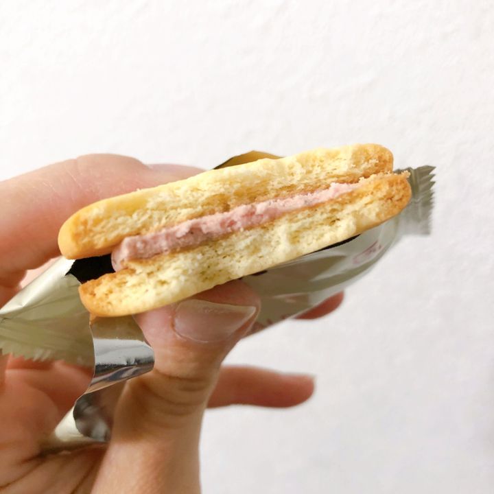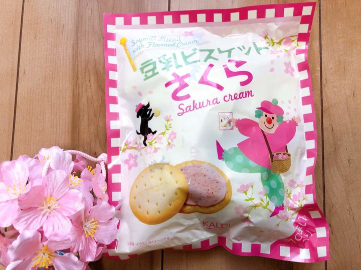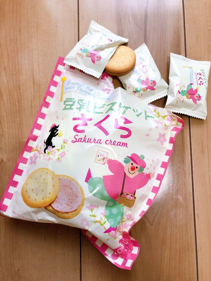 サクサク生地の豆乳ビスケットに桜色のクリーム。
