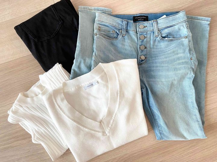骨格診断を受けたところ、筆者は鎖骨や肩甲骨などの骨が目立つ「ナチュラル」というタイプで、ゆったりした服装が得意であることが分かりました。反対に、からだのラインがハッキリ出る服装は骨っぽさが目立ってしまうのでNG。そこで、フィット感のあるトップスやハイウエストのスキニーパンツなどを手放しました。