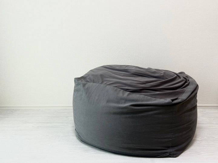 我が家では、ソファの代わりにビーズクッションを購入しました。くつろぐには今のところこれで十分!省スペースで、掃除がしやすいのもポイント。