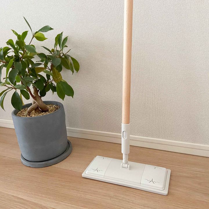 さまざまなヘッドとポールを組み合わせて使用する無印良品の掃除システム。今回はフローリング用のヘッドに、木製のポールをチョイスしました。