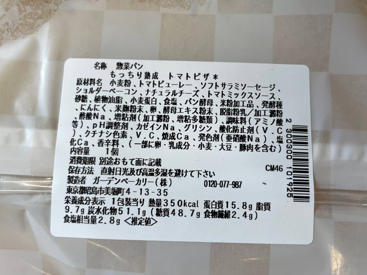 ピザだし、こんなに大きいし、カロリーも高いよね…と450kcal超えを覚悟し、見てみると1個あたり350kcalと思った以上に低くて心置きなく食べられました。