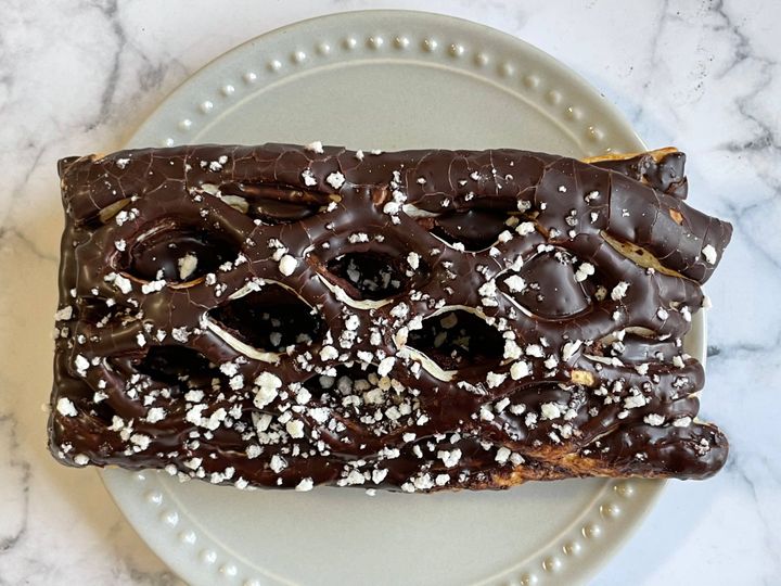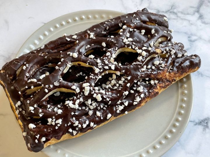 さっくりとした食感の生にでチョコクリームとコーティングチョコの濃厚感が味わえるパイです。
