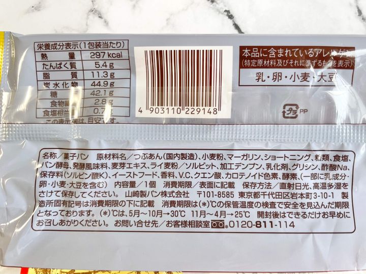 1個あたり297kcalとあんこなのでほかの菓子パンよりは低い印象です。