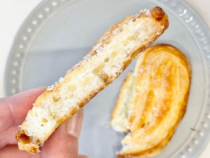 パイなので、軽く焼いた方がおいしいかも?と思い、トーストして少し冷ますと表面がサクッとして香ばしくなりました。
