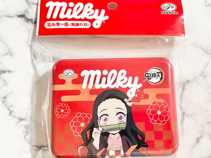 70周年を迎えた不二家の「ミルキー」と、「鬼滅の刃」のコラボレーションをし、鬼滅の刃を手がけたufotableが描き下ろしたイラストがデザインされています。
