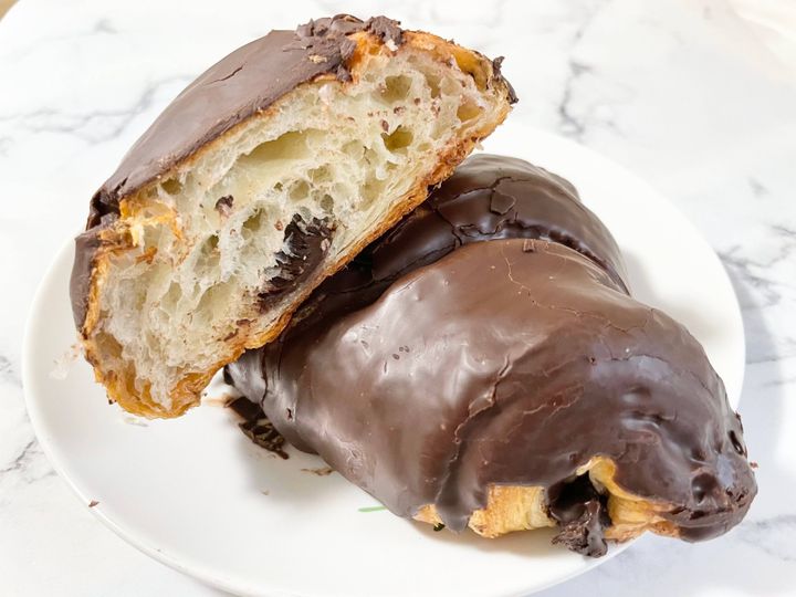 近くで見るとチョコがまんべんなくぬられてるクロワッサンでした。