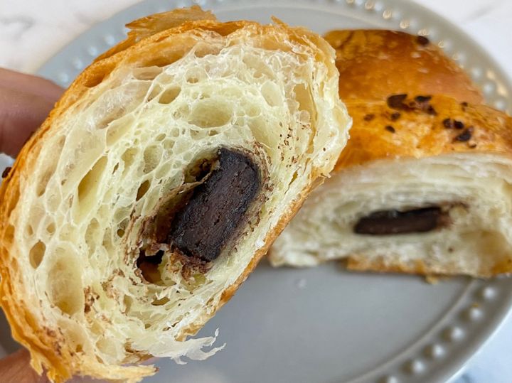 中のチョコレートが溶けて生地に染み込み風味が増して、サクサクのクロワッサンとのバランスがいいですね。