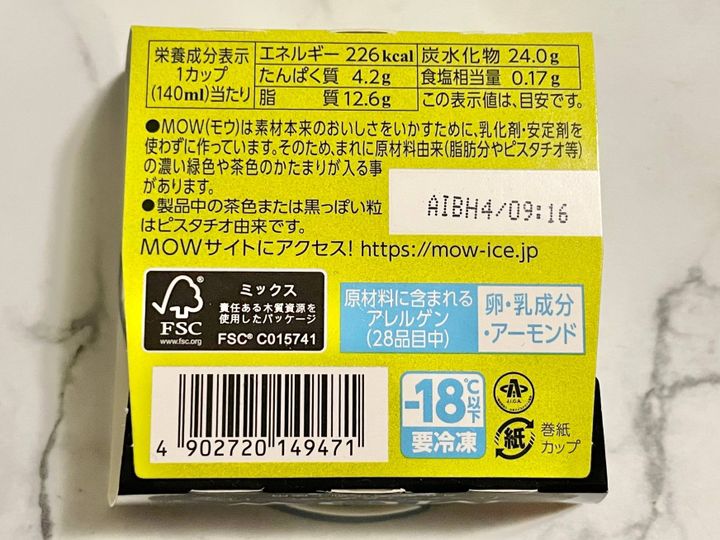 MOW(モウ) スペシャル ピスタチオ&チョコレート 税込183円