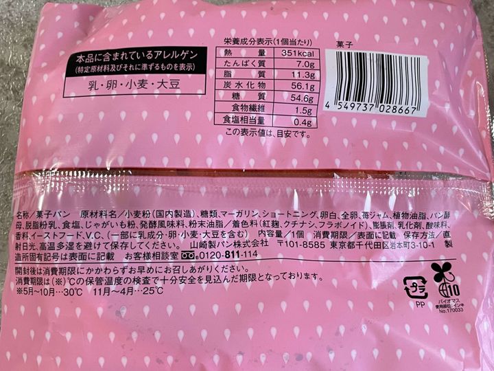 どこもいちごを使ったパンやスイーツが増えていちご好きにはたまらない季節になりましたね。ローソンへ行くと、ベーカリーコーナーの一番上にあったのは「いちごぼうしパン」。イチオシのようで、ポップが貼られていました。何よりかなり大きくて食べ応えがありそう。ちょうど小腹が減っていたので、購入しました。