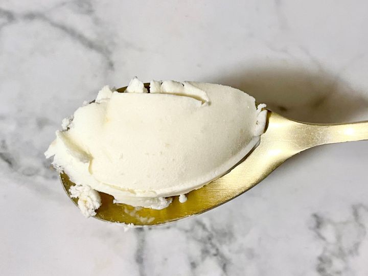 時間が経つと柔らかくなってきてレアチーズケーキのようになってきました。