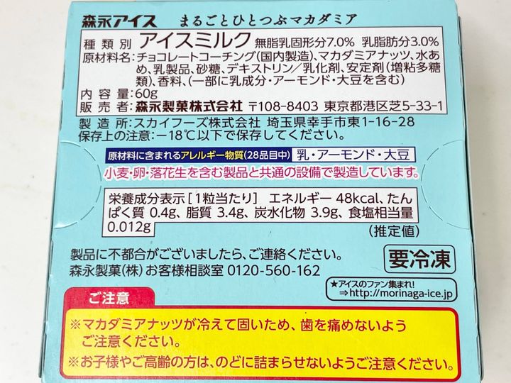 原材料を見るとアイスコーチングの次にマカダミアナッツが来ています。