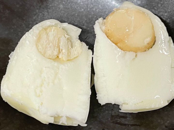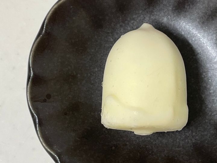 食べるまではマカダミアナッツがひとつぶはいってることを疑っていましたが、カットしてみるとしっかりと大きめのマカダミアナッツが入っていました。