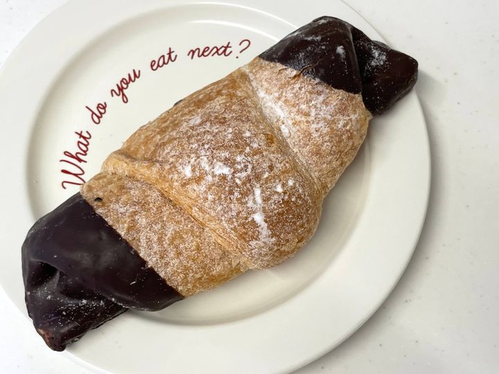 クロワッサン生地の両端にチョコレートがコーティングされており、中に入ってたのはチョコレートクリームかと思いきやコーヒーホイップクリームでした。
