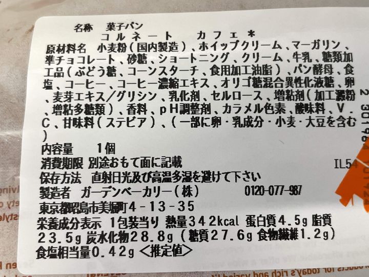 原材料を見ると、小麦粉に次いで、ホイップクリームが多いのはうれしいですね。