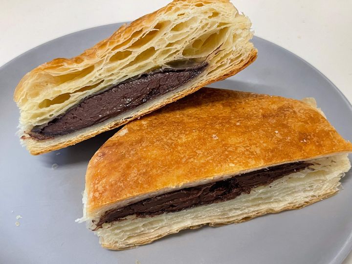 ファミリーマートの公式サイトによると、本家の「パイの実」と同じ形である六角形のデニッシュ生地の中にチョコを入れ、サクサクとした食感に仕上げているそう。