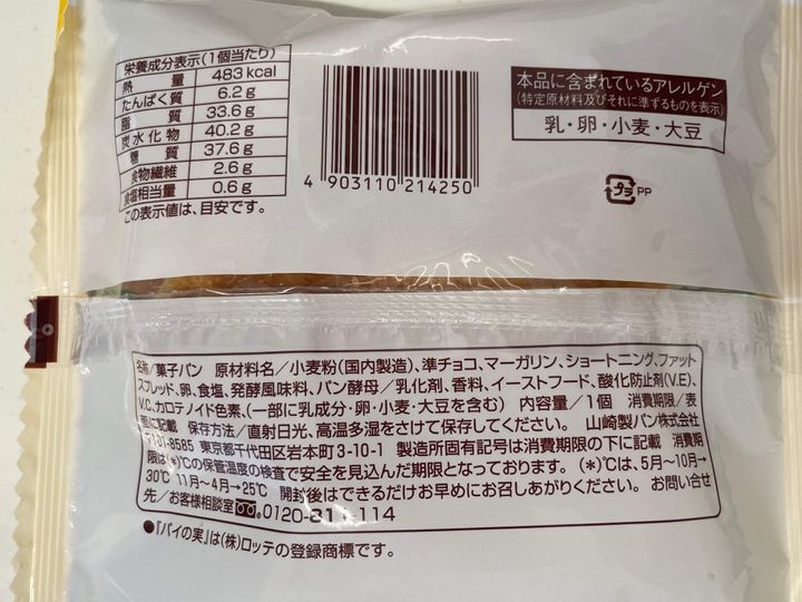 原材料を見ると2番目にチョコが来ていて。チョコがたっぷり入っていることが分かります。