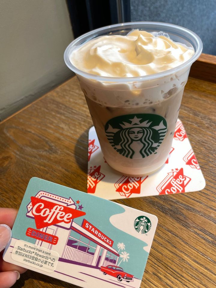 おすすめカスタムは、ホワイトモカシロップを半量にして甘さを控えめにするか、エスプレッソショット追加(+55円)でビターな味わいするかだそうです。