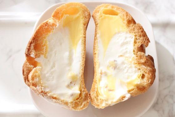 2つのクリームが楽しめるシュークリーム。 沖縄を除く全国で発売。 ●容器:(約)縦11.5×横16.0×高さ7.5㎝