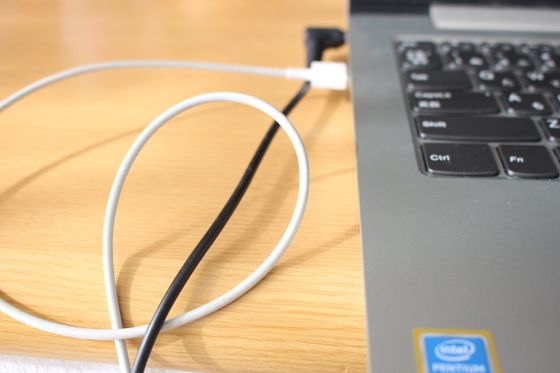 パソコンの充電とiPhoneの充電コードの2本のみなのに、コードがぐるんと1周していてお恥ずかしい…。