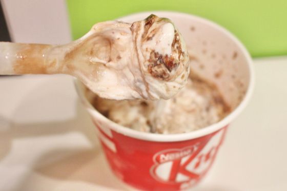 一口目はバニラアイスの方が濃厚かな?と思いましたが、混ぜたらチョコソースが下から出てきてしっかりキットカットの味がしました!