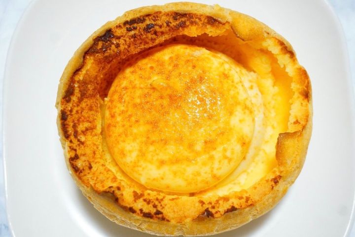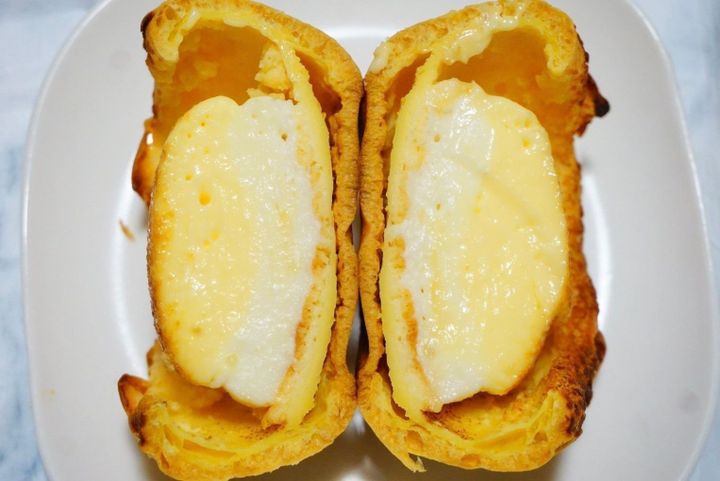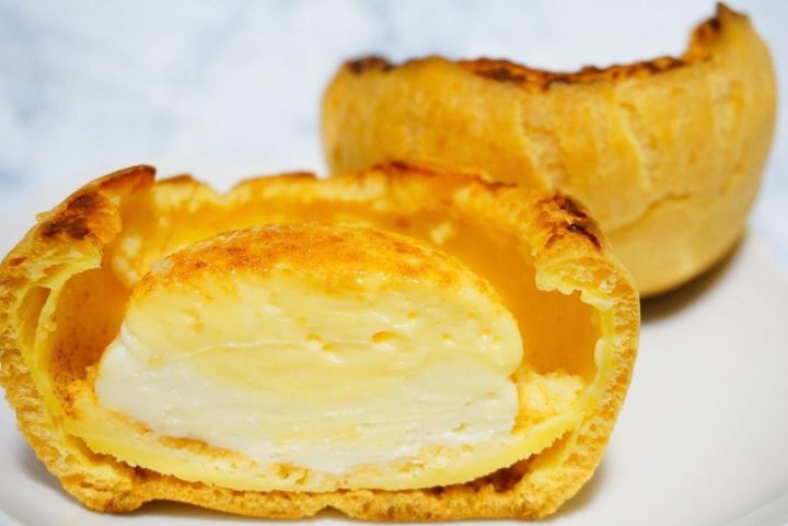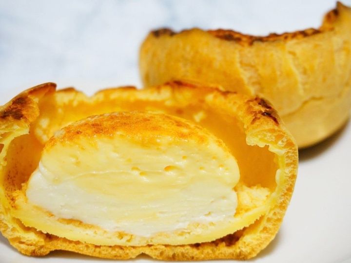 シュークリーム生地にチーズケーキがぷるんとのっていて、見たことない形状が新鮮です。