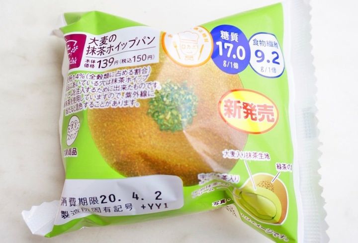大麦の抹茶ホイップパンおいしい!好きな味!
