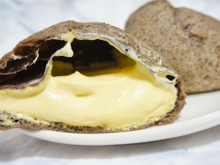 もちっとした食感のシュー生地にブラックココアが練り込んであり、マスカルポーネとクリームチーズを使ったティラミスに仕上がっています。