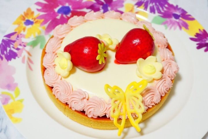 苺の中はクリームがたっぷり詰まっていて、ちょうちょは別に梱包されていて好きなところに刺さるようになっていました。割れないように配慮されてるのも良いですね。
