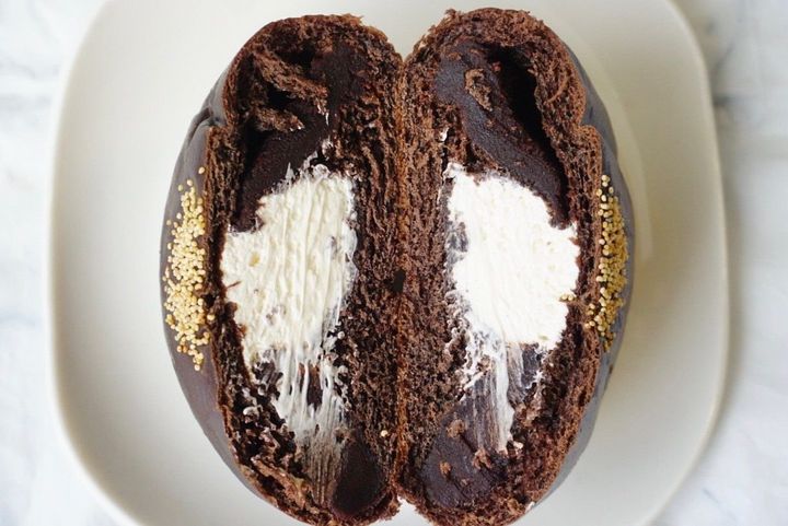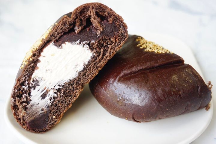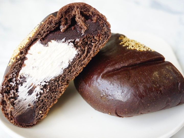 ビターなチョコあんと、ホイップクリームが入ったチョコあんぱんです。