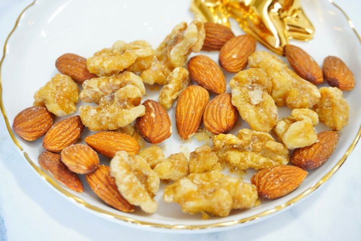 メープルシロップで味付けされたくるみと、食塩不使用の素焼きアーモンドが入っています。