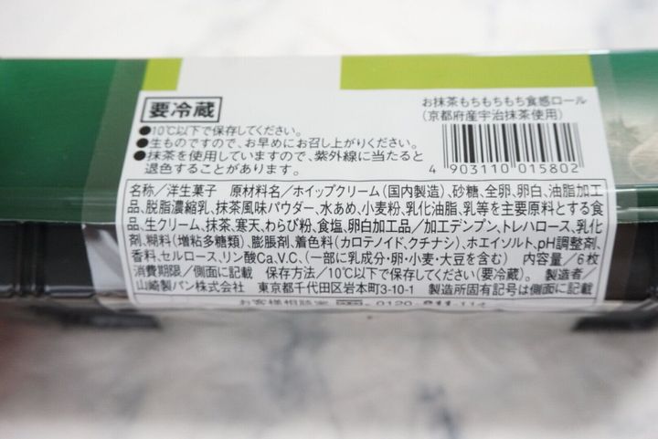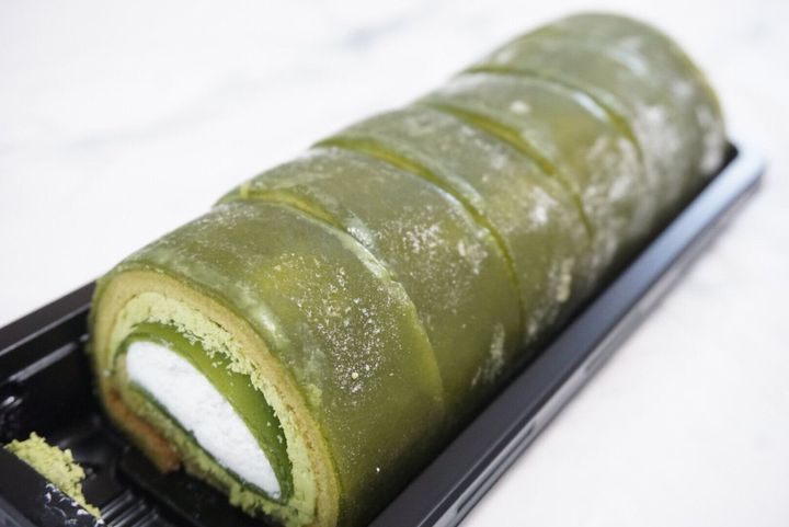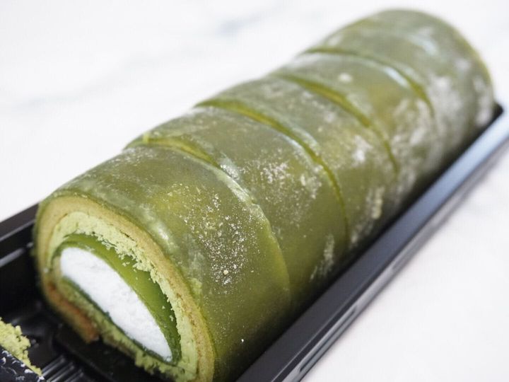 京都府産宇治抹茶を使用した抹茶味のもち食感生地と求肥生地を重ねて、抹茶クリーム、ホイップクリーム、抹茶味の求肥生地を間に包んだロールケーキになっています。