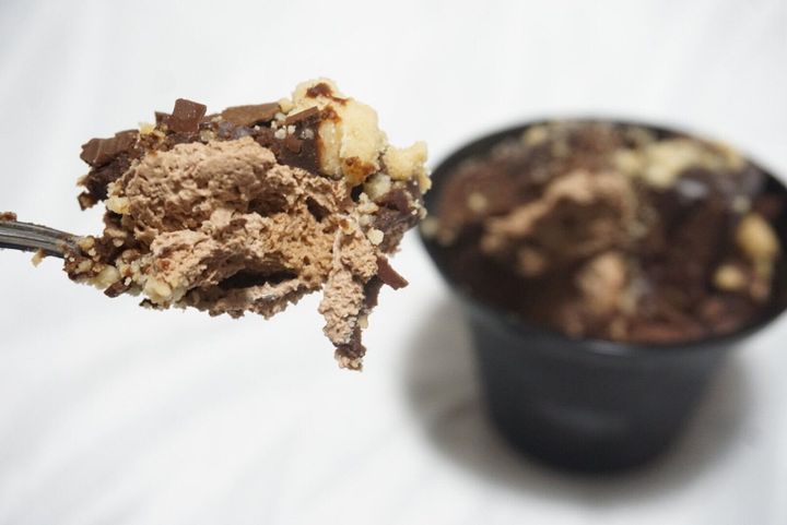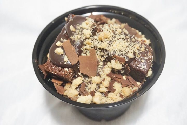 塩をアクセントとし、悪魔のチョコムースをベースに濃厚なブラウニーにパリパリっとした食感のチョコソースをたっぷりとかけてクランブルクッキーをトッピングしています。