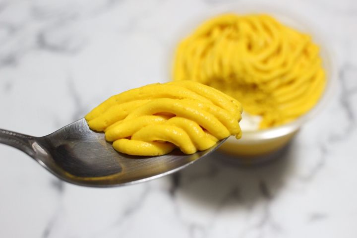 クリーミーで甘さは控えめになっていてかぼちゃそのものが濃厚で口あたりが良く舌の上でよく伸びます。