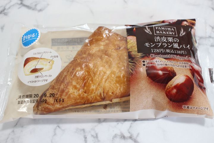 おいしそうなものがあるか見ているとベーカリーコーナーで「渋皮栗のモンブラン風パイ」を発見。