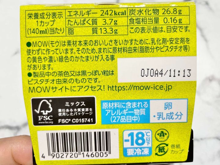 去年発売されて瞬く間に終売したセブンイレブン限定の「MOWピスタチオ」が期間・数量限定で帰ってきました。2020年11月3日(火)から販売されると見て早速買ってきました。