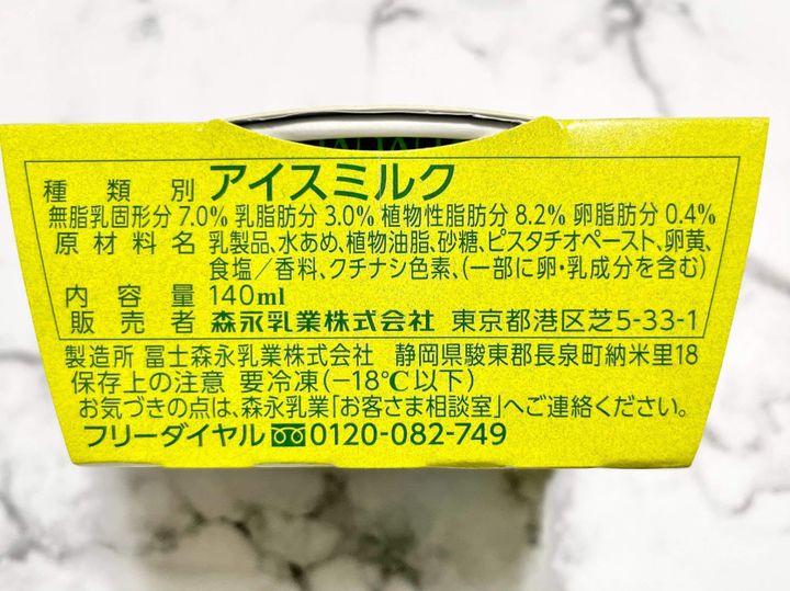 ピスタチオの黄緑とミルクの白が混ざり合ってきれいなマーブルになっています。