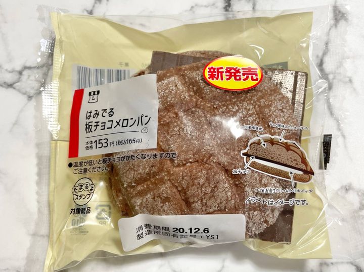 ローソンでは以前"はみでる板チョコデニッシュ"が出ていてとてもおいしかったので、今回の"はみでる板チョコメロンパン"もおいしいに違いない!