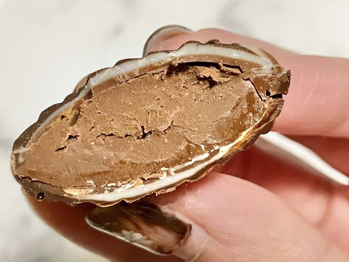 噛むと外側はぱりっとしたチョコレートで、中に舌にまとわりつくほどねっとりとしたチョコレートが入っています。